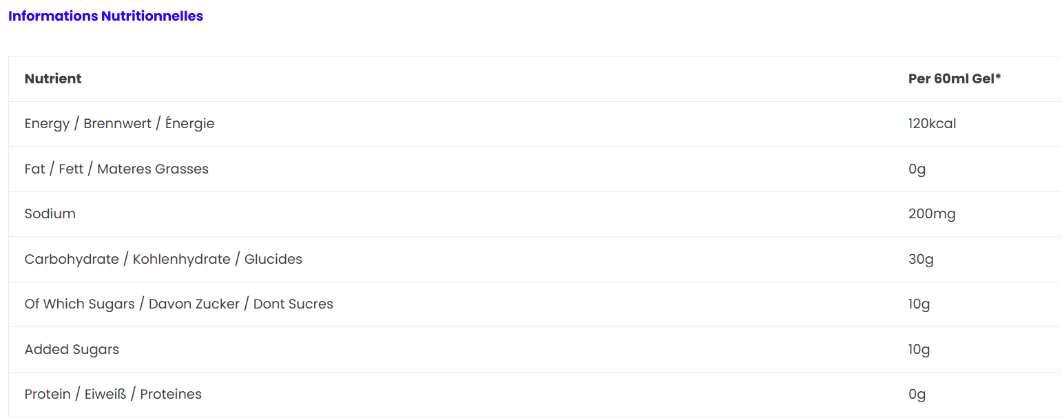 GEL ÉNERGÉTIQUE AVEC UN RAPPORT GLUCOSE/FRUCTOSE DE 2:1 QUI FOURNIT 30g D'ÉNERGIE RAPIDE ET RÉGULIÈRE.