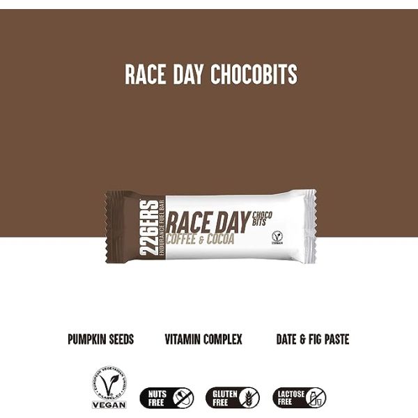 \nTake a Race Day bar every 30-60 ’according to the needs in both training and competitions. It is also perfect to drink before sports and meet the energy needs of that moment prior to exercise.