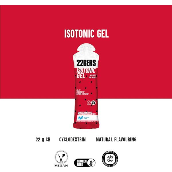 L’isotonic gel est un gel énergétique où la principale source de glucides est la cyclodextrine, un hydrate de carbone de toute dernière génération qui permet de renouveler le glycogène bien plus efficacement.