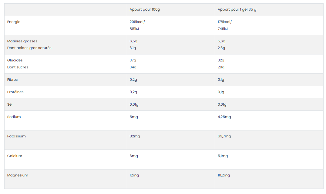 Une texture nouvelle dans l'univers du gel énergétique, agréable en bouche, facile à ingérer et surtout, pas écœurante.