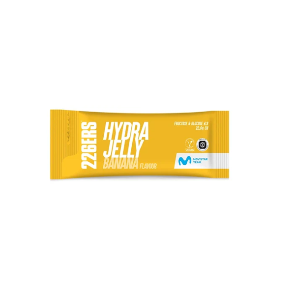 Banana, 100 mg de sodium. HydraJelly est un gel énergétique à la texture gélatineuse dont l’apport en glucides (22,6 g) est élevé. Réussir à couvrir leurs besoins énergétiques au cours de la pratique d’un sport est l’une des principales difficultés auxquelles doivent faire face les sportifs. C’est pourquoi, chez 226ERS®,
