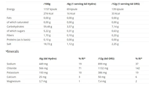En résumé, le 6D HYDRO/ORS est le choix idéal pour tous les athlètes qui ont besoin de liquides et d'électrolytes supplémentaires, sans glucides ni sucres supplémentaires, et surtout dans un environnement chaud et humide. Grâce à son pH neutre (~ 7,5), cette boisson convient parfaitement aux athlètes d'endurance, car elle n'est pas "agressive" pour l'estomac et les dents. En effet, aucun acide n'a été ajouté à cette boisson sportive.