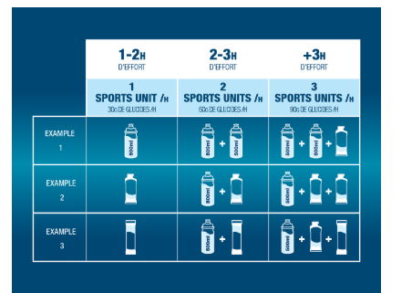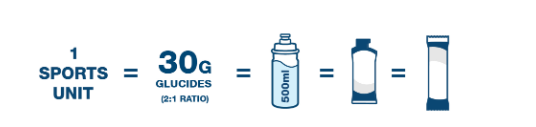 Lors d'efforts sportifs modérés à intensifs d'une durée de 1 à 3 heures, un apport en hydrates de carbone de 30 g, 60 g ou même 90 g par heure est généralement conseillé pour une performance optimale. Par conséquent, 1 SPORTS UNIT contient exactement 30 g d'hydrates de carbone, ce qui permet aux athlètes d'atteindre facilement et précisément l'apport en hydrates de carbone souhaité. L'apport idéal en hydrates de carbone dépend de l'athlète, de ses objectifs et du type de sport qu'il pratique.